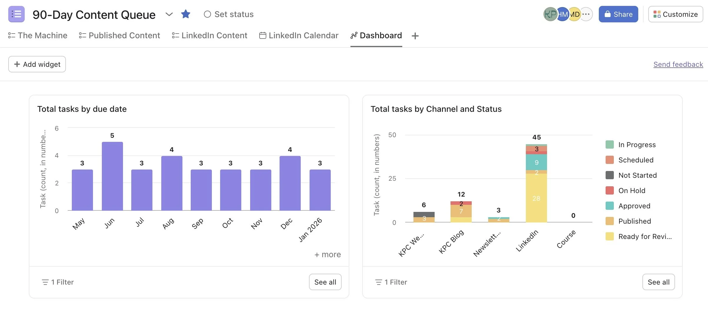 - Approvals Delays - On average, how long does it take for an asset to make it through all approvals? How is this time impacted if each approver has revisions?